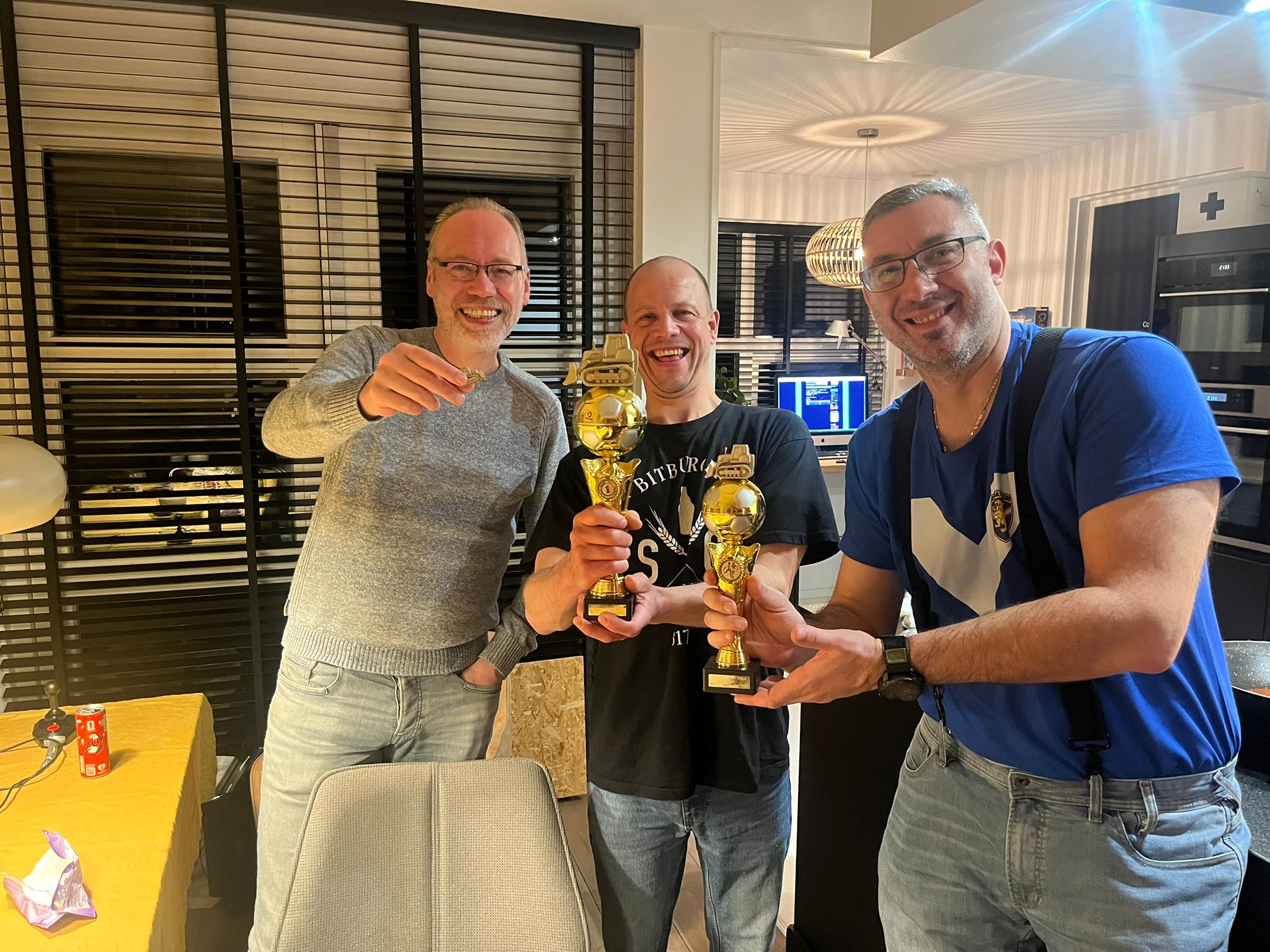 In a thrilling final between M4rk and Rinusch, M4RK took the Frisian Stallion Cup by pulling off his specialty: scoring the winning ("Ost Frisian" ;-)) goal just before the final whistle (89th minute. 4-1, 1-3). They are entitled to a full year of proud care taking of the respective perpetual trophy's with the 3-D printed, gold-sprayed bulldozers on top, reflecting their unique powers of shoving the competition from the pitch..(well...you get the idea..)