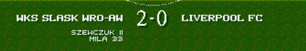 Po ponad 20tu latach wróciły wspomnienia. Dawno już temu na Stadionie we Wrocławiu gościł już wielki Liverpool. Blisko wtedy 50 tysięcy ludzi oglądało wspaniałe widowisko. Tym razem zespoły spotkały się po raz kolejny. Oba osłabione. W Śląsku po meczu z brutalami z Argentyny brakowało dwóch napastników Ulatowskiego i Bilińskiego, a w składzie rywali lekką kontuzję leczył Kuyet. Nie trzeba mówić, kto stawiany był w roli faworyta przed tym spotkaniem ... jednak rzeczywistość okazała się brutalna dla drużyny z miasta Beatelsów. Wspaniała gra w obronie i skuteczne ataki pozwoliły odnieść prestiżową wiktorię Wrocławskiej jedenastce. Najpierw bramkę strzelił wieczny rezerwowy, drewniak Szewczuk. Druga bramka padła z rzutu wolnego. Przy piłce ustawił się Mila i wydawało się, że będzie chciał powtórzyć uderzenie z meczu przeciwko MC i sławnemu Seamanowi w bramce. Jednak rozwiązanie tej akcji było nieco inne. Do piłki podszedł Szewczuk oddal lekko na bok i wtedy Mila kropnął nie do obrony. 2:0 i do końca meczu już nic się nie zmieniło.