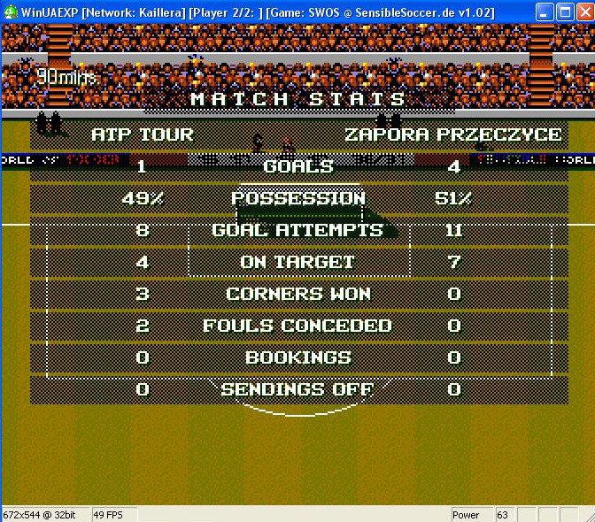 W przerwie spotkania Noel odpowiednio zmotywował swoich podopiecznych co można było zauważyć po rozpoczęciu drugiej połowy. Coraz to składniejsze akcje wymiany podań na lini pomocy pomiedzy Hewittem a Djokoviciem powodowaly coraz czesterze zagrozenie pod polem karnym Zapory. Jednak to kolejnym golem popisał się znów Loboda gdzie po perfekcyjnie wyprowadzonym kontrataku w sytuacji sam na sam nie dał szans bramkarzowi ATP i swoim 4 golem w tym spotkaniu podwyższył prowadzenie swojej druzyny. Trener gospodarzy coraz bardziej nerwowo reagował przy bocznej lini boiska pokrzykując na swoich piłkarzy. Dało do skutek w 79 minucie gdzie sam mistrz nie dawno zakończonego Wimbledonu Roger Federer po precyzyjnym podaniu Marata Safina pieknym strzalem po ziemi pokonał bramkarza Zapory i zmniejszym rozmiary porazki na 1:4. To wszystko na co było stąc druzynę ATP w tym meczu. Widac było zmeczenie i brak świeżości w druzynie Noela po nie dawno zakończonym Wimbledonie. Miejmy nadzieje ze zawodnicy udając się na 3 tygodniowy odpoczynek odpowiednio zregeneruja siły i na 2 kolejke stawia się odpowiednio zmotywowani i wypoczęci. Po ladnym spotkaniu nie co jednostronnym zapisujemy 3 oczka na koncie Zapory. Dziękujemy za transmisje i zapraszamy na 1 mecz drugiej kolejki gdzie to zmierza się Ogory pod wodza Basto z Bydgoska Zawisza prowadzana przez Szymsa.