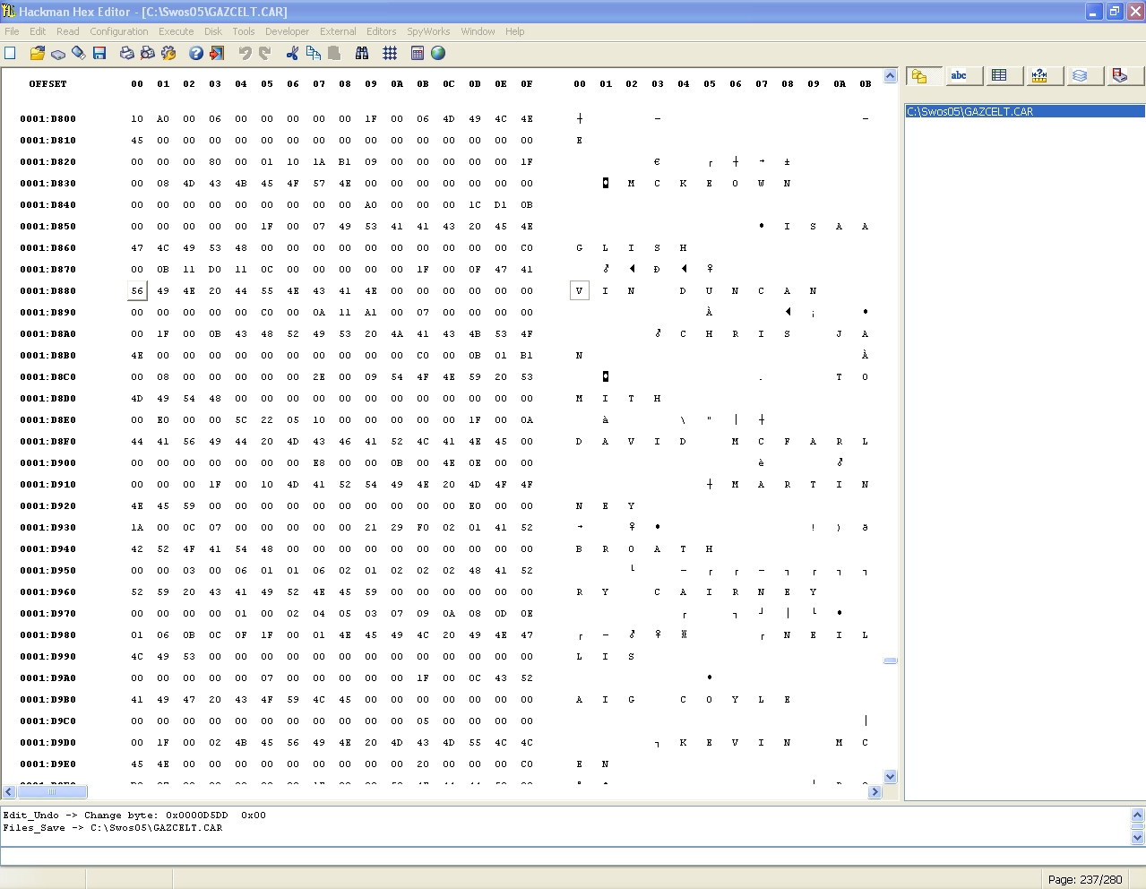 i ve attached a pic of how my career looks in the hex editor with the D880 highlighted. see it s trying to change van persies name why why why?