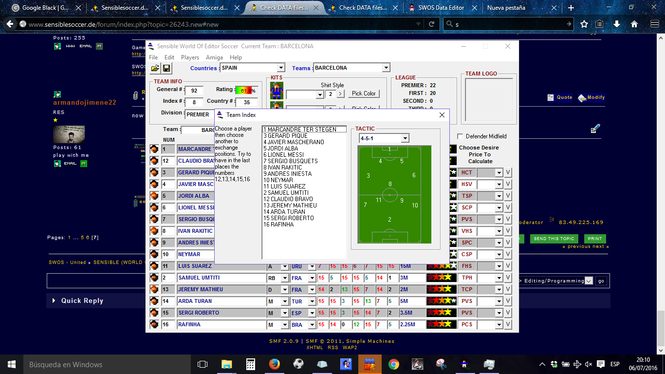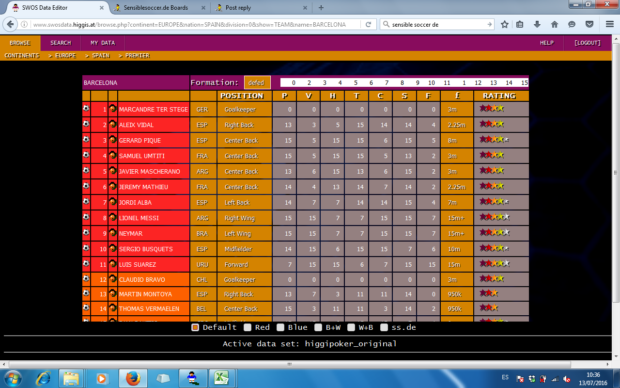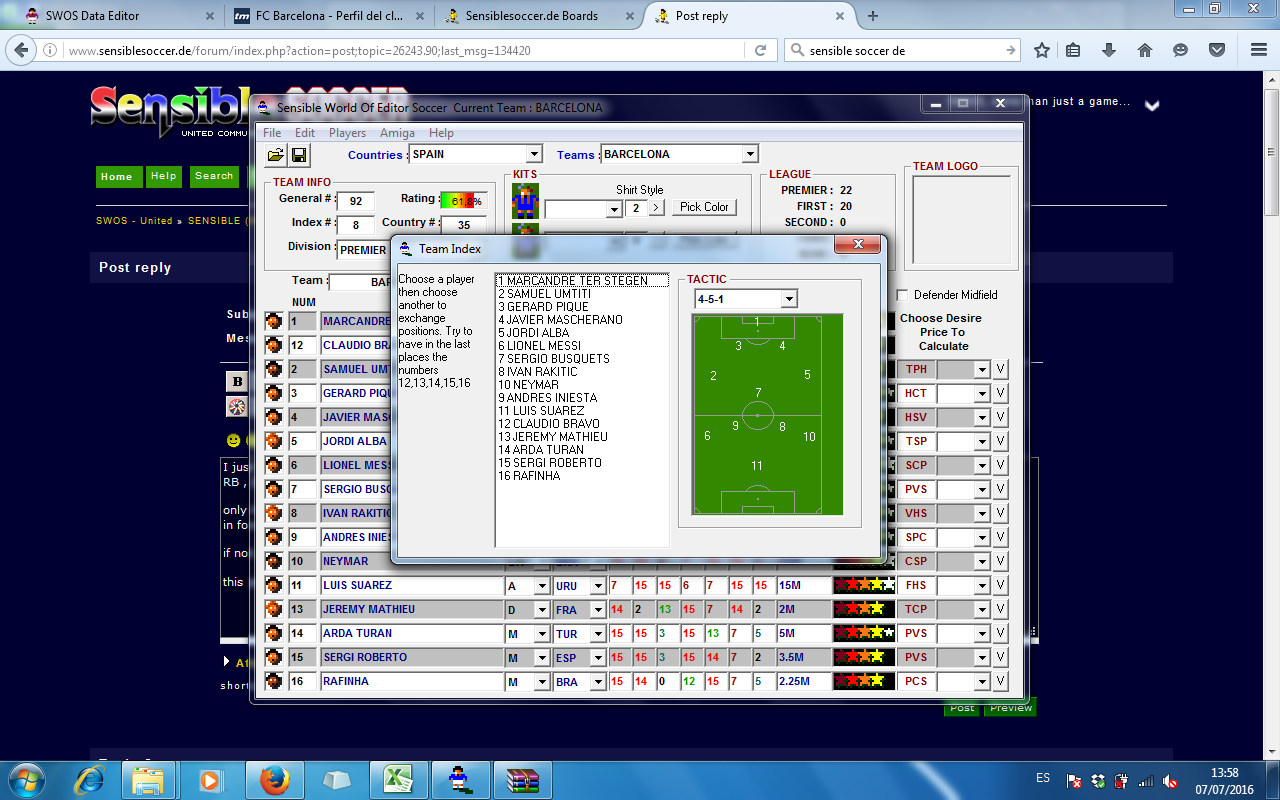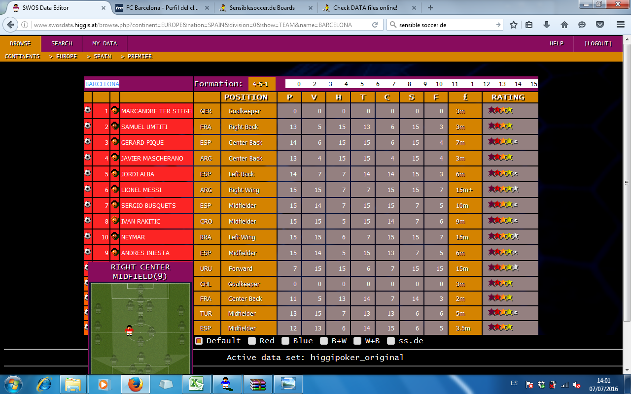 in formation 4-5-1 i must change in the web higgis ej: in Barcelona . Iniesta M per Neymar LW