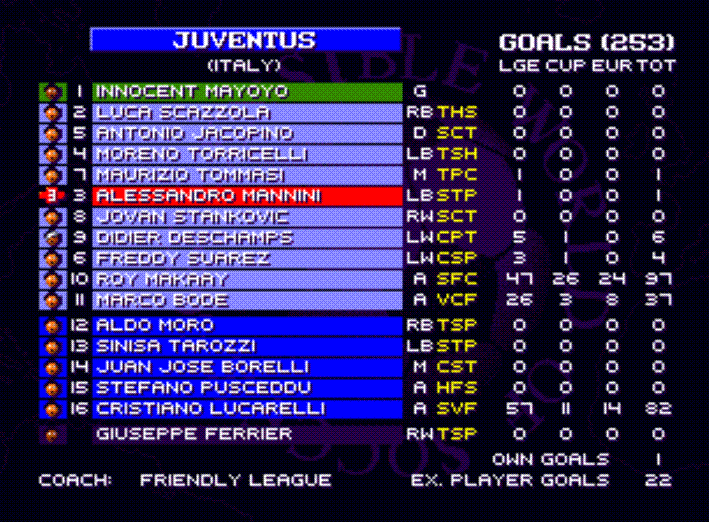 On an eve of return leg vs Real Madrid an offer for Angelo Peruzzi has come. 2.25M for a player of 1.7 estimated worth was too good to be turned down so Innocent Mayoyo took the place between posts over for the rest of the season. He has managed to keep clean sheet in 4 games including Copa Italia final vs Parma frustrating both Gianfranco Zola nad Enrico Chiesa.