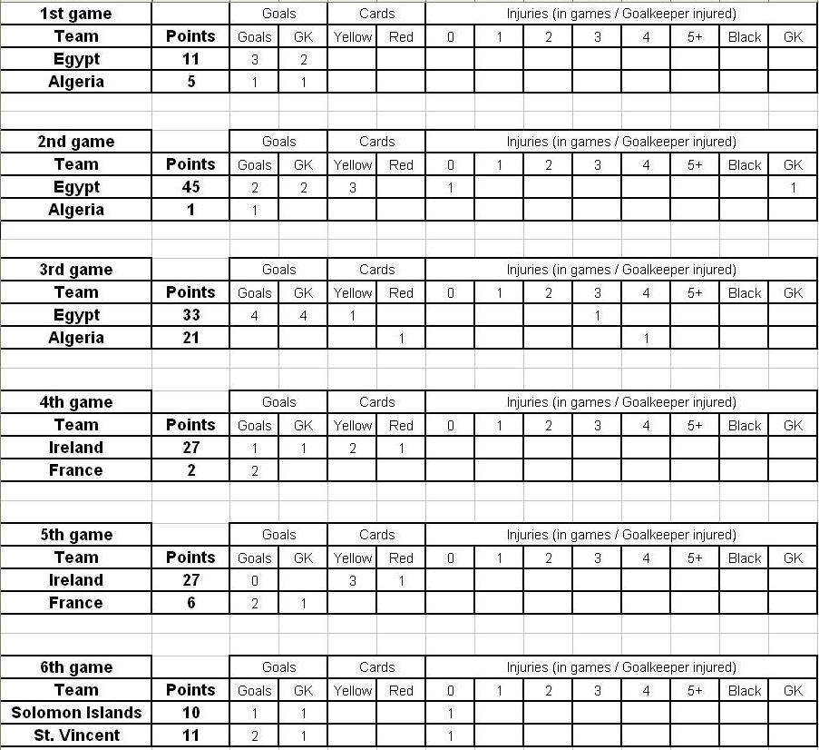 In the Excel picture I ve added to this post you can see the results of a few of our games. Post what you think of the final scores.