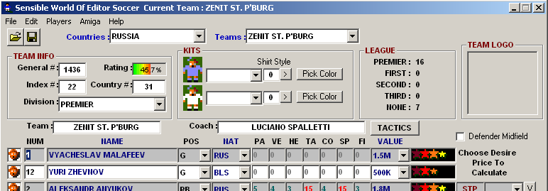 NP. The aim with these is to make it so that no club or player is absent other than when necessary due to the limitations of SWOS league file sizes/16-player squads, and then it s the ones who would be missed least (i.e. no-one like Zenit)... so if something seems to be missing beyond that, I would definitely like it brought to my attention