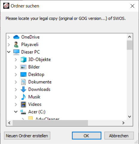 Sure, you must point to your original version of SWOS on your harddrive when prompted! Only then it will work.