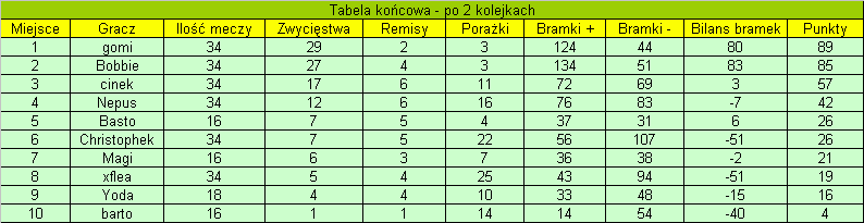 mały regres ilości graczy - 7 w porównaniu do 9 z pierwszej kolejki