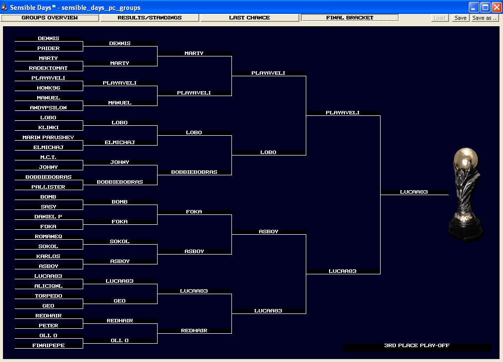 I will do my best to broadcast the games at Sensi Days like last year. Whether this is possible depends solely on the internet connection.