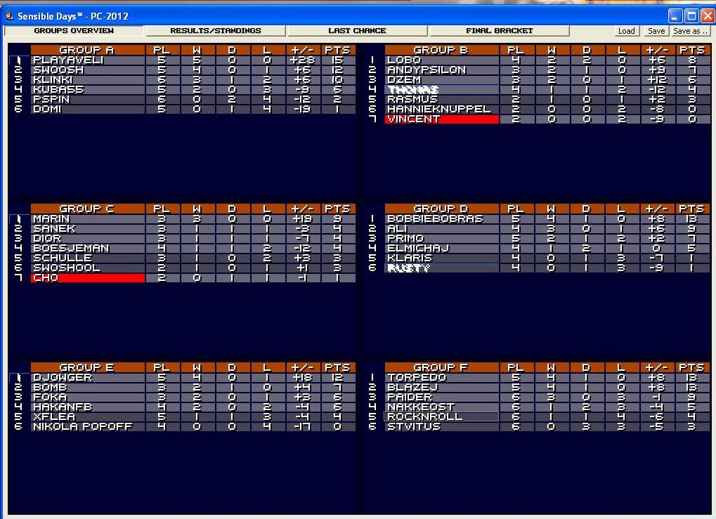 Wow, the groups part finished fast! I guess there were not many problems with PC s! That s great! From the last update Schulle has made a great run and finished second, ElMichaJ is still in second gear, Dzem is a great surprise! To finish above Andypsilon (also great 2nd place), and above Rasmus and Lobo... just great. Group E was extra close... It looks like a great tournament! Cant wait to see draw for 1st elimination round.