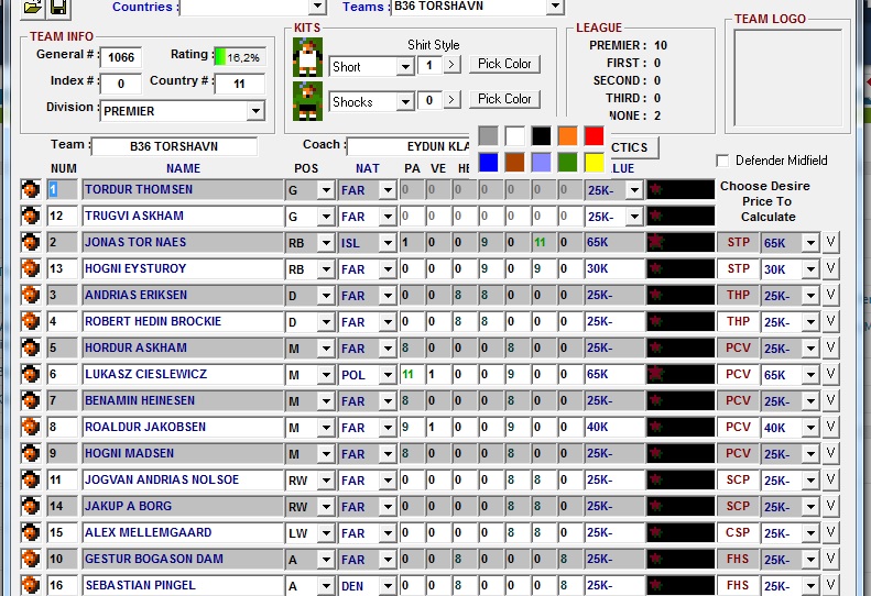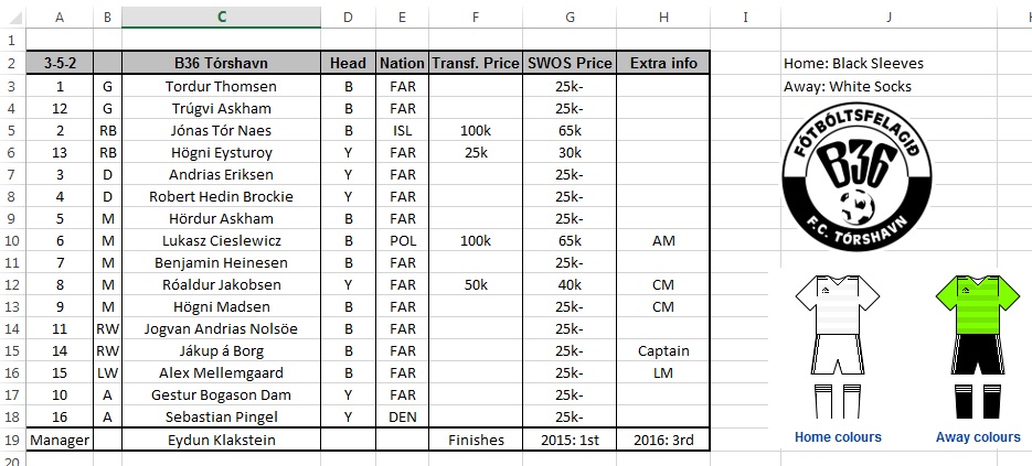 Thing I never knew...there are 12 Faroe teams in SWOS, 10 in the Premier League and 2 Non-League teams.
