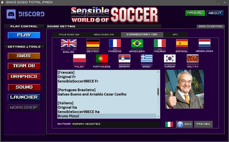 - in the menu it's better to put "Bruno Pizzul" instead of "Italian commentary"